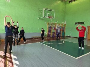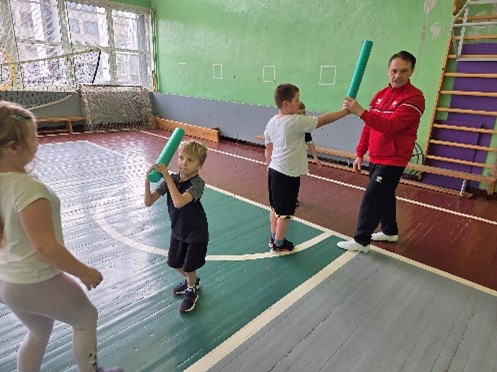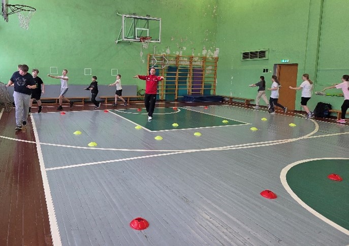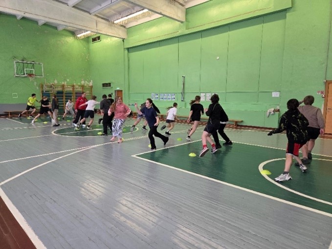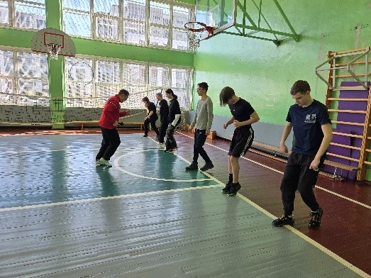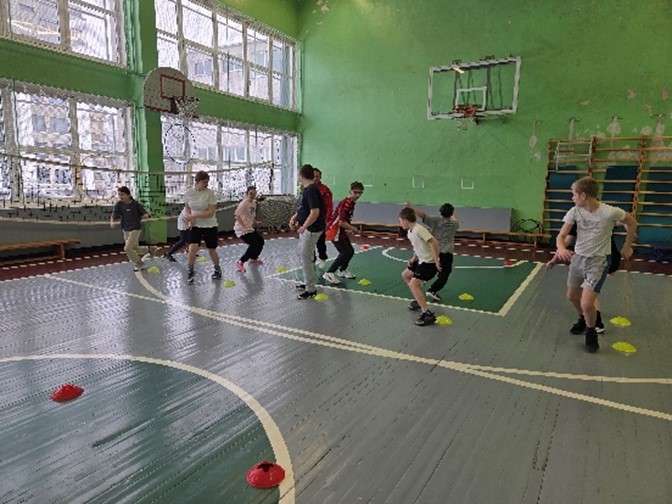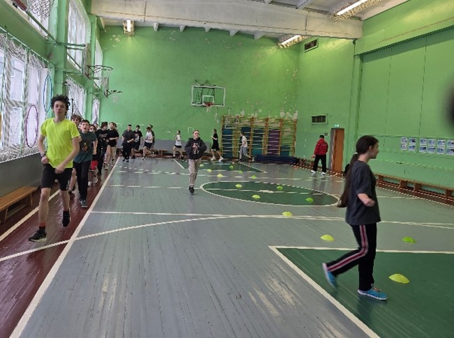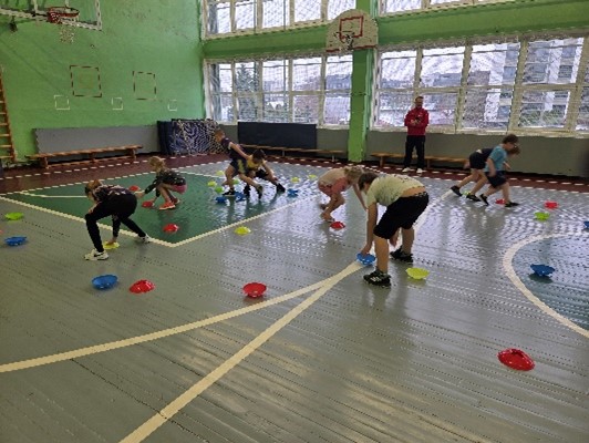 Nodarbības sākumā tika uzsvērta iesildīšanās nozīme un veiklības nostiprināšana. Pēc skrējiena un dažādiem tā veidiem izglītojamie sadalījās divās komandās. Komandas saņēma nosaukumus “Čips” un “”Čops”.