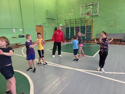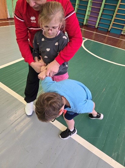 Pirmie zināšanas atkārtoja 2.klašu skolēni. Ļoti īsi pārrunājuši aktuālo uzvedību laikā, kad kāds tevi aizskar, skolēni pārgāja pie praktiskas darbošanās. Iesildīšanās izvērtās par aizraujošu sacensību divu komandu starpā. Ar rotaļu un sacensību elementiem viss notika ātri un emocionāli piesātināti.