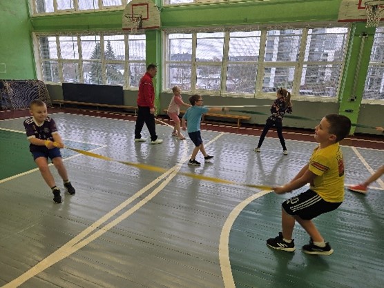 Ikvienam svarīgi būt spēcīgam un izveicīgam. Šim nolūkam skolēni sacentās, kurš kuru pārvilks pāri laukuma viduslīnijai. Atsevišķu skolēnu vidū cīņa bija spraiga.