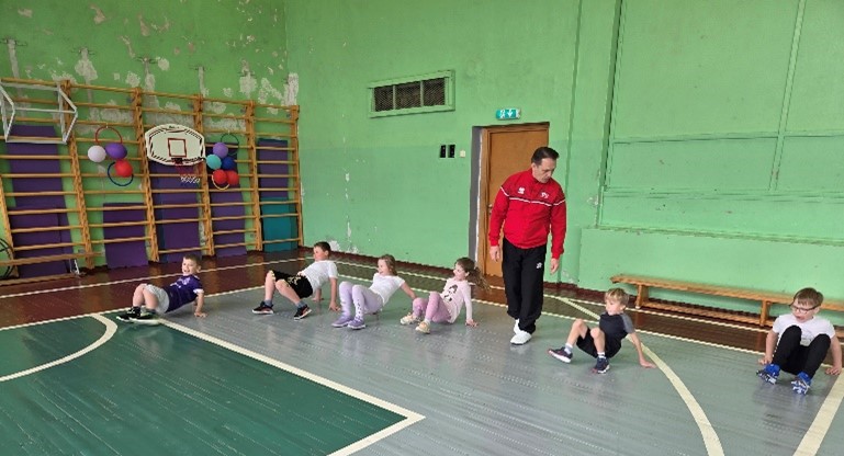 Iesildīšanās laikā skolēni iztēlojās sevi dažādu putnu un dzīvnieku vietā un kustībā centās viņu atdarināt. Skolotājs lika viņiem iejusties dažādās lomās: gan zaķu, kuri pārvietojās lecot maziem lēcieniem, gan lapsu, kuras pārvietojās ļoti ātri, gan stārķu, kuri staigāja augsti ceļot kājas. Šāda iesildīšanās pirmklasniekiem ļoti patika. Trešās klases skolēni jau iesildīšanos veica klasiskā variantā, izpildot dažādus skrējiena veidus un iesildošos vingrinājumus plecu un kāju daļai.
