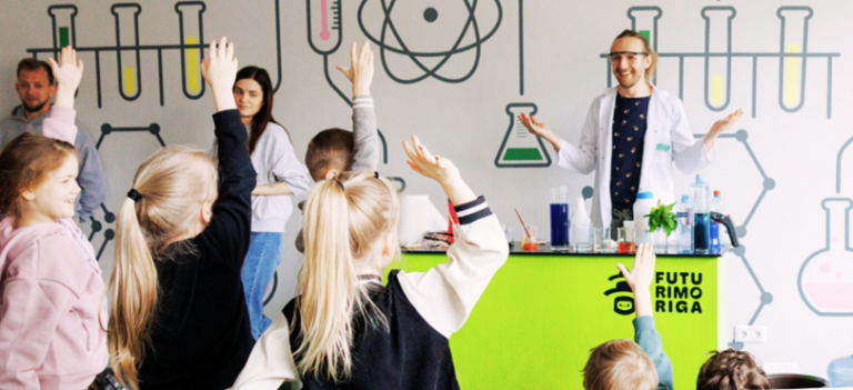 Pēc eksperimentiem skolēni devās izpētīt Futurimo Rīgas interaktīvās zonas, kur varēja izmēģināt dažādas ierīces, spēles un zinātniskos uzdevumus.