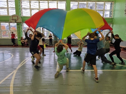 Par dienas spilgtāko uzdevumu uzskatām sadarbības uzdevumu ar izpletni. Vispirms izglītojamie izpētīja pēc kāda principa darbojas izpletnis, kā jāceļ rokas, lai tas skaisti paceltos gaisā un veidotu kupolu. Šajā uzdevumā visai komandai bija jānoslēpjas zem izpletņa, lai neviens nebūtu redzams. Nākošajā uzdevumā uz izpletņa tika novietota vieglā bumba un vēzējot izpletni tai vajadzēja lidot augšup lejup ik pa laikam atsitoties pret izpletni.