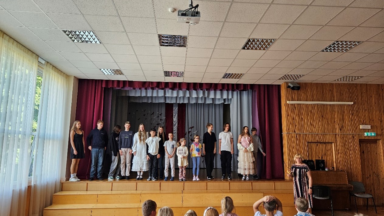 Priecājamies, ka pirmklasnieki uz skatuves jutās droši un runāja pietiekami skaļi. Vēl jāpiestrādā pie uzstāšanās prasmēm – izteiksmes, stājas un tml. Bet tam vēl daudzi mācību gadi priekšā.
