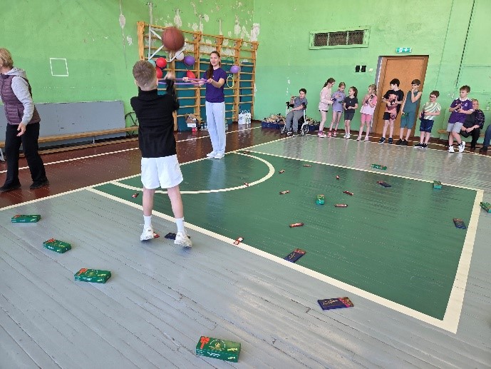 Paula un Digna bija padomājušas, lai katram, kurš bija atnācis uz tikšanos, būtu iespēja tikt pie saldumu balvas. Basketbola trīspunktu un soda metienu laukumā tika izvietotas dažāda lieluma konfekšu kastītes un šokolādes.